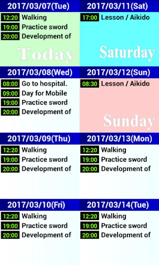 (2) Sometimes we have to check the next same week day.(For practice or hospital)