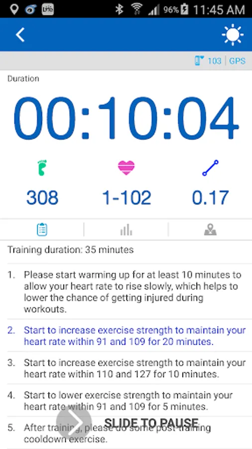 • Tracks various workout data after starting a workout, including heart rate, speed, distance, calories, steps, etc