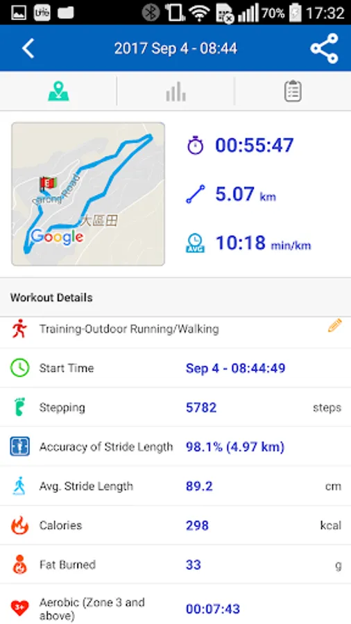 o Provides complete and detailed historical workout data, analytical charts, and routes on Google Map