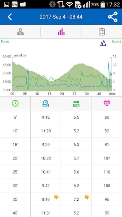 o See detailed stats/charts of you pace, distance, time, speed, altitude, and calories burned