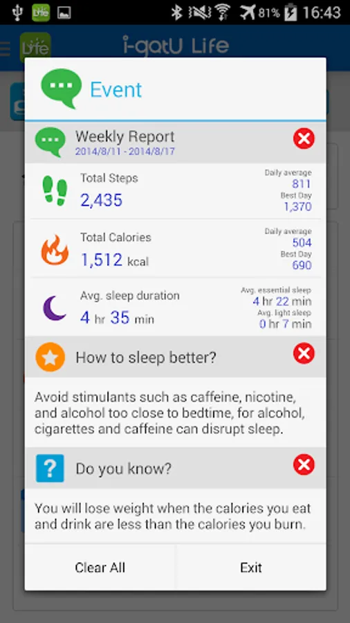 i-gotU Life works perfectly with Q-Band/Q-Watch, which tracks/records your workout progress and sleep quality in everyday life. While Q-Band/Q-Watch allows you to set different goals to motivate yourself to try more intensive workouts, i-gotU Life offers friendly reminders to keep you informed with various notices directly from Q-Band/Q-Watch, including incoming calls, emails, messages, calendar event alerts, or push notifications from other social media apps. During workout, you get to view the real-time data of your exercise progress from i-gotU Life on the Q-Band/Q-Watch screen, including heart rate, speed, distance, calories, and etc. Besides tracking workouts, i-gotU Life also allows you to create personalized training programs to help practice and achieve different levels of fitness goals. Exercise is always more fun when you do it with friends. Use the friendly Fitness Pals function to invite friends to join you whenever you exercise, wherever he or she might be, and motivate each other with words of encouragement. Furthermore, i-gotU Life allows you to easily back up or restore all workout data using Google Drive at any time, in just a few taps.