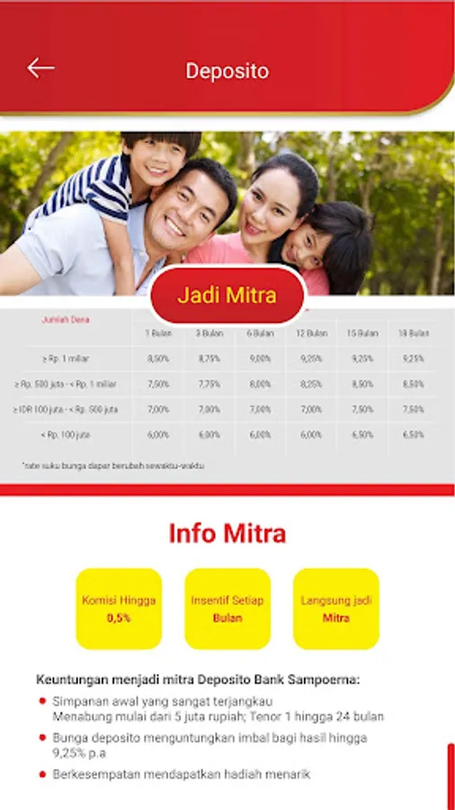 BSS Partners is a mobile application for those of you who want to supplement your income by selling banking products from Bank Sahabat Sampoerna. The products that you can offer are savings, deposits, current accounts and loan products. Through this application you can monitor all your activities as a BSS Partner, from the application submission process to the commission that you will receive.
