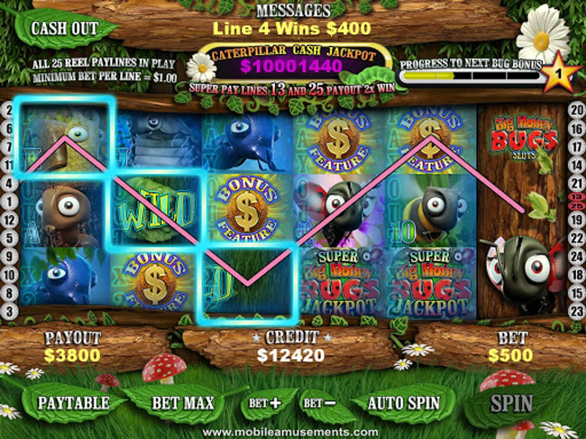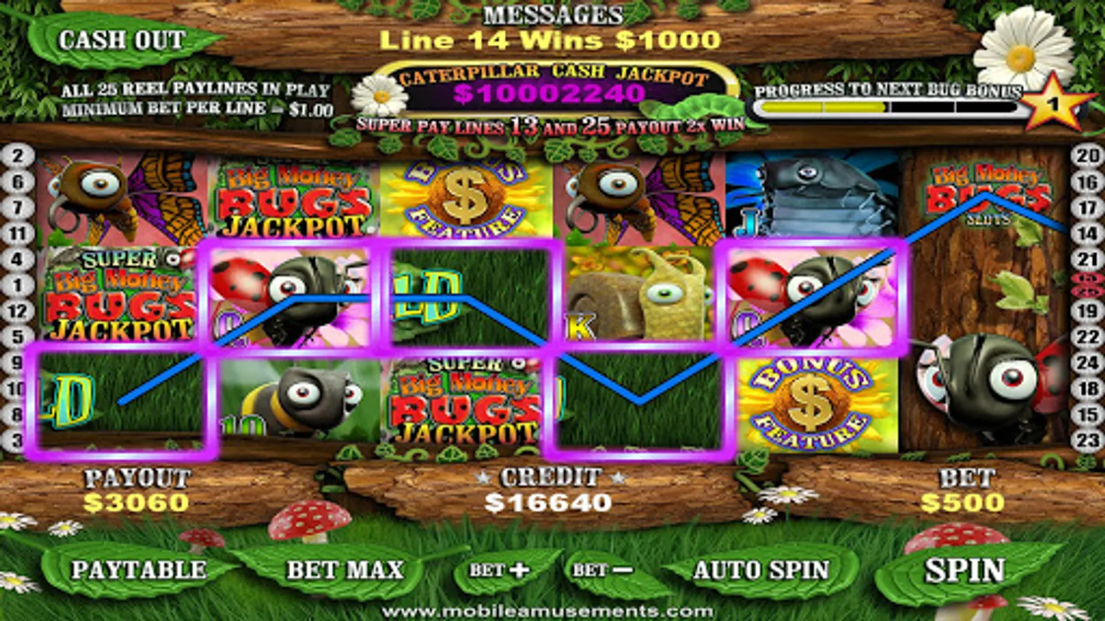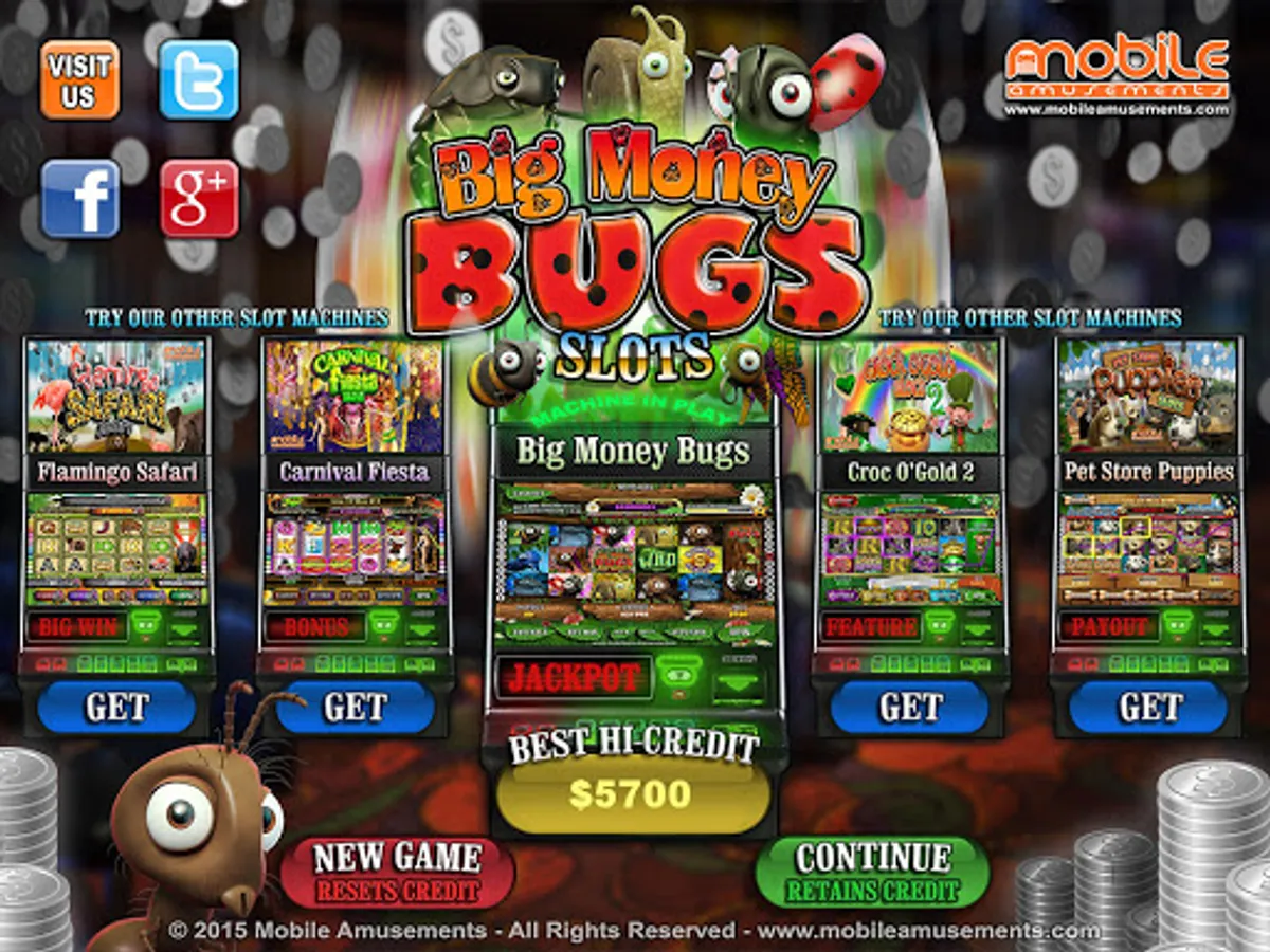 Big Money Bugs Slots the bug themed lucky vegas casino slot machine / pokie from Mobile Amusements where you can win a massive virtual cash fortune!