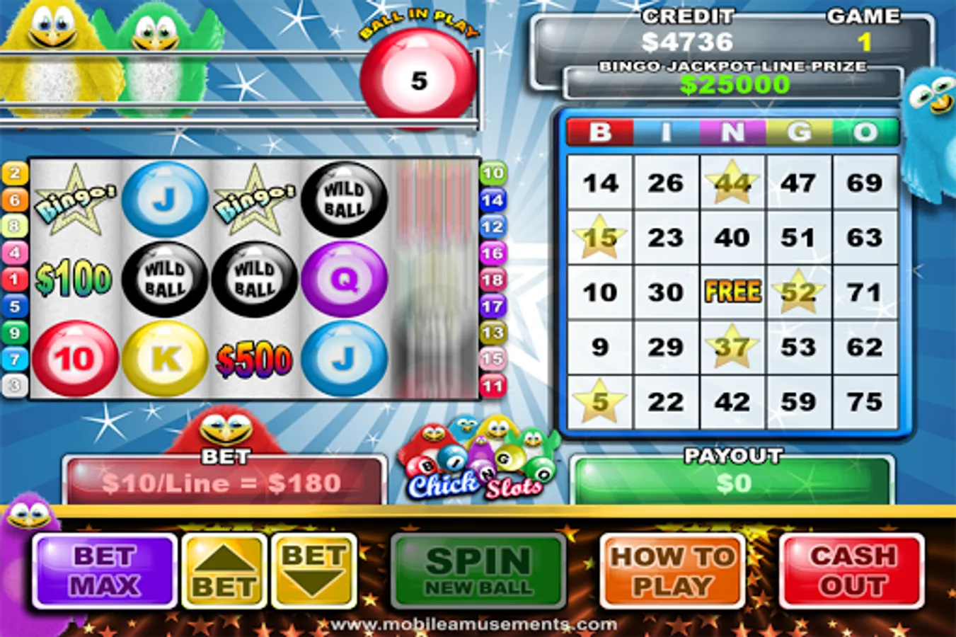 With unlimited free coins try to win as much cash as possible by matching reel symbols to bingo balls and also by playing features such as the Lucky Egg Bonus and Bingo Chick Cash Bonus to accumulate virtual credit prizes.