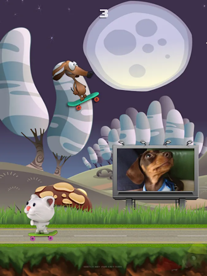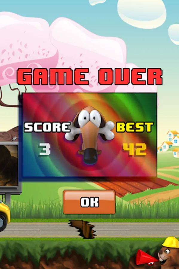 Collect bones as you progress down the busy road whilst avoiding oncoming traffic and critters.