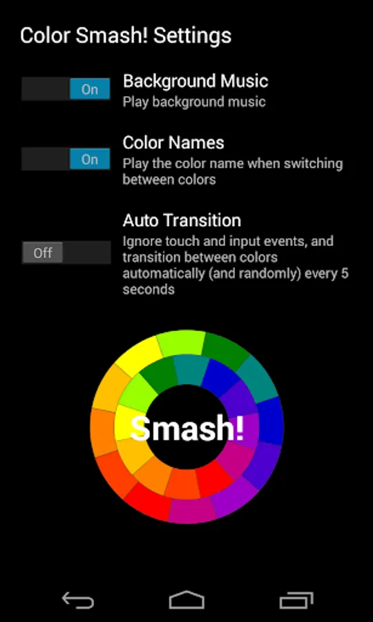 Touch the screen to switch randomly between the most common colors.