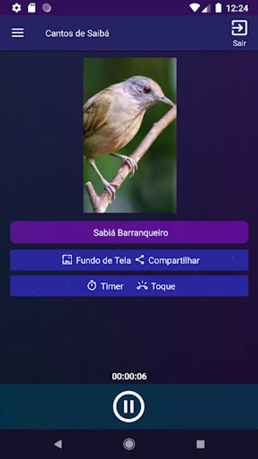 Listen to the most beautiful corners of Sabiás. Use the timer options for booklet. Add the corners to your phone's ringtone, alarm and notification. Add Sabiá wallpapers, always updated corners: