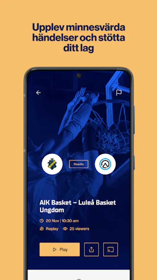 In order for you to be able to watch content, you first need to become a monthly supporter of a team. You can do this easily via the browser when you visit baskettv.se.