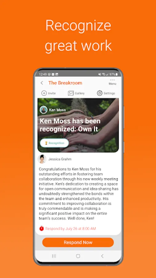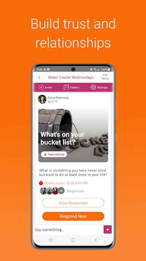 Our platform is an everyday, frontend destination for culture drivers such as team building, recognition, surveys, employee wellbeing, philanthropy, communities of shared interest, and more. And with everything in one place, we identify and suggest the specific actions employees can take – from sharing a photo to recognizing a colleague – to improve business outcomes like retention, satisfaction and performance.