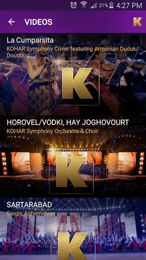 KOHAR Symphony Orchestra & Choir (frequently known as KOHAR) of Gyumri, Armenia, is the most popular orchestra in its rendition of ‘All Time Armenian Favorites’, with innovative and revised arrangement and orchestration, which has become the trademark name of its Armenian music and songs. KOHAR was founded in 1997 as an independent musical and cultural institution by the Armenian patron, Harout Khatchadourian of Lebanon, who along with his brothers, Shahe and Nar, entirely sustain the activities of KOHAR and all its concerts in tribute to their parents; in memory of their late father Aram and in Honor of their mother Kohar.