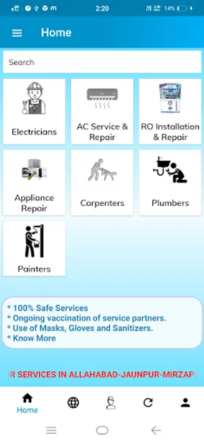 Our HomeService app provide engineers for any type of services to our customers such as-