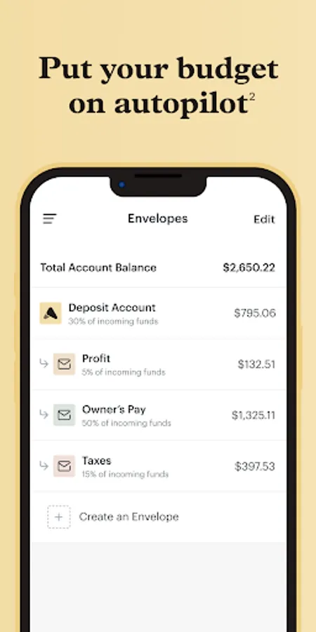 - Create Envelopes² to organize your money for expenses like taxes, payroll, and rent
