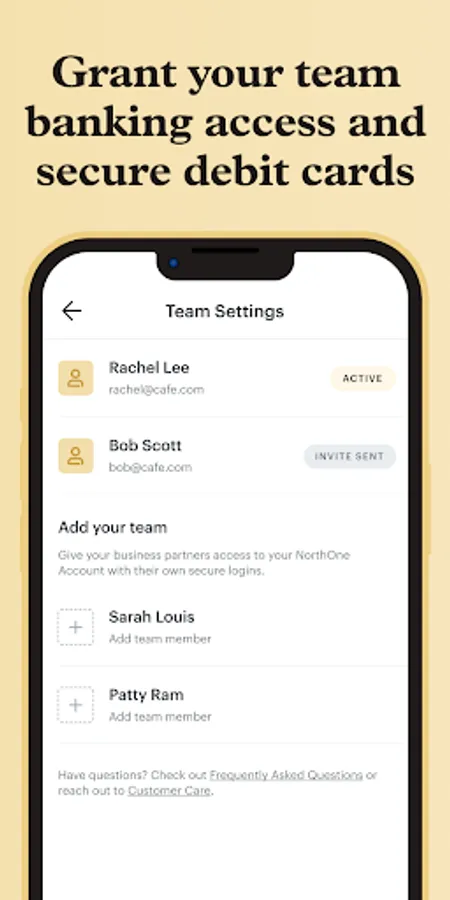 - NorthOne is designed for teams of business builders. Each co-owner will get their own login and NorthOne business banking MasterCard Debit Card so they won’t need to share yours.
