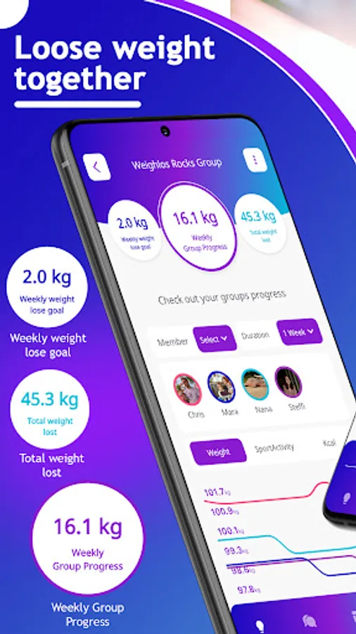 Find motivation with your friends, family or like-minded people in a private weight loss group to reach your goals and lose weight in the long run.