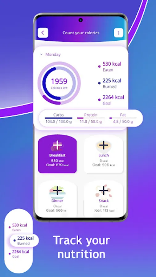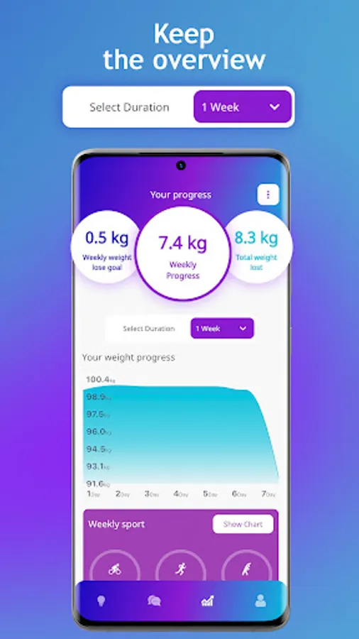 -> keep track of your goals and progress with a weight diary and statistics on exercise, calories, protein, etc. to celebrate your successes
