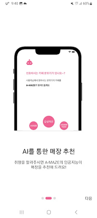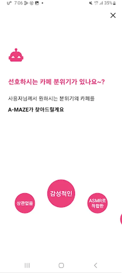 - Recommended selection keyword 3: "I'm curious about why you visit a cafe. A-MAZE will recommend the best place for you according to the purpose of your visit!"