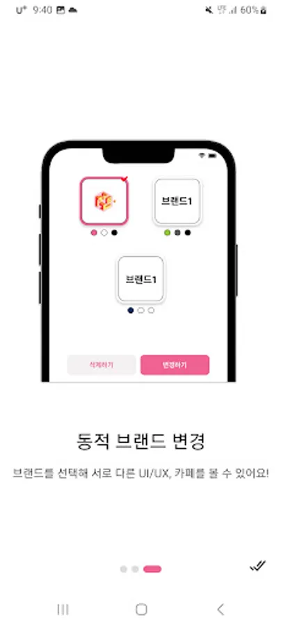 - If you select a brand, you can experience a different experience by changing the theme color, logo, and affiliated cafes of that brand.