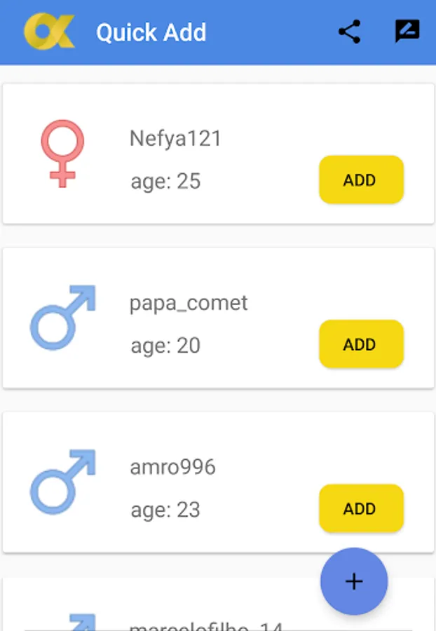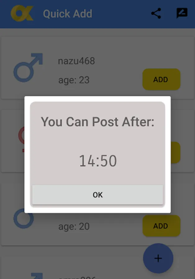 its very simple app , no need for registration, All what you need is to post your username by clicking add post button . And DON'T forget to add the other users as well