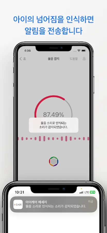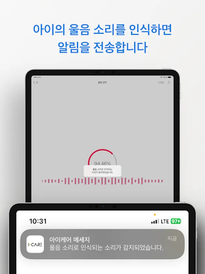 It detects voices in real time and sends a notification when crying is recognized.