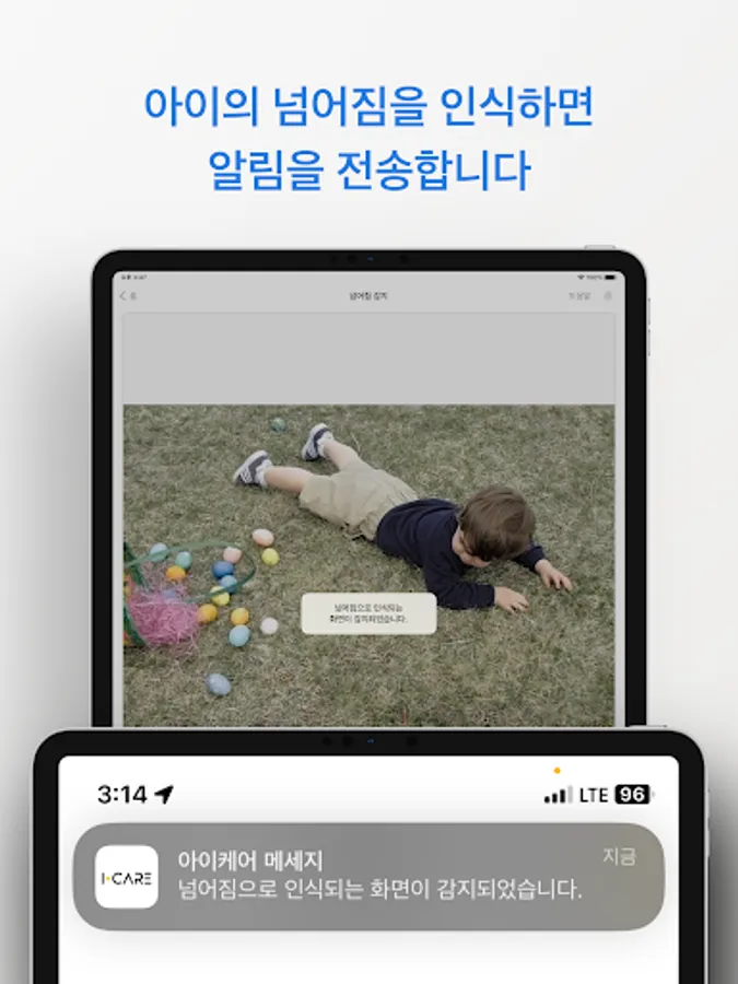 It uses a camera to track the child's movements in real time and sends a notification when a fall is detected.