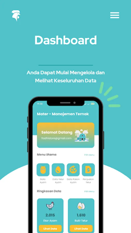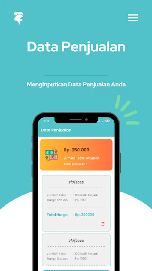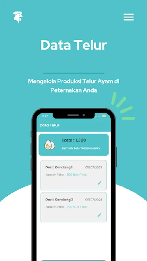Furthermore, this application provides a sales reporting feature that allows farmers to record egg sales data. Farmers can enter information regarding the date of sale, the number of eggs sold, and the selling price. With this feature, farmers can generate detailed sales reports and get important information about income from selling eggs. This report can be used to analyze sales performance, identify sales trends, and create more effective marketing strategies.