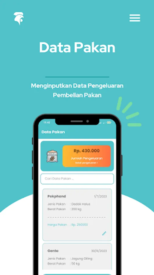 In addition, this application also has a feed stock management feature which is very useful for laying hen breeders. Farmers can record and monitor their feed supplies easily. This feature allows the farmer to avoid inefficient feed shortages or overstocking. With accurate information regarding feed stocks, farmers can make good planning, manage feed purchases in a timely manner, and ensure that their laying hens get adequate feed intake.