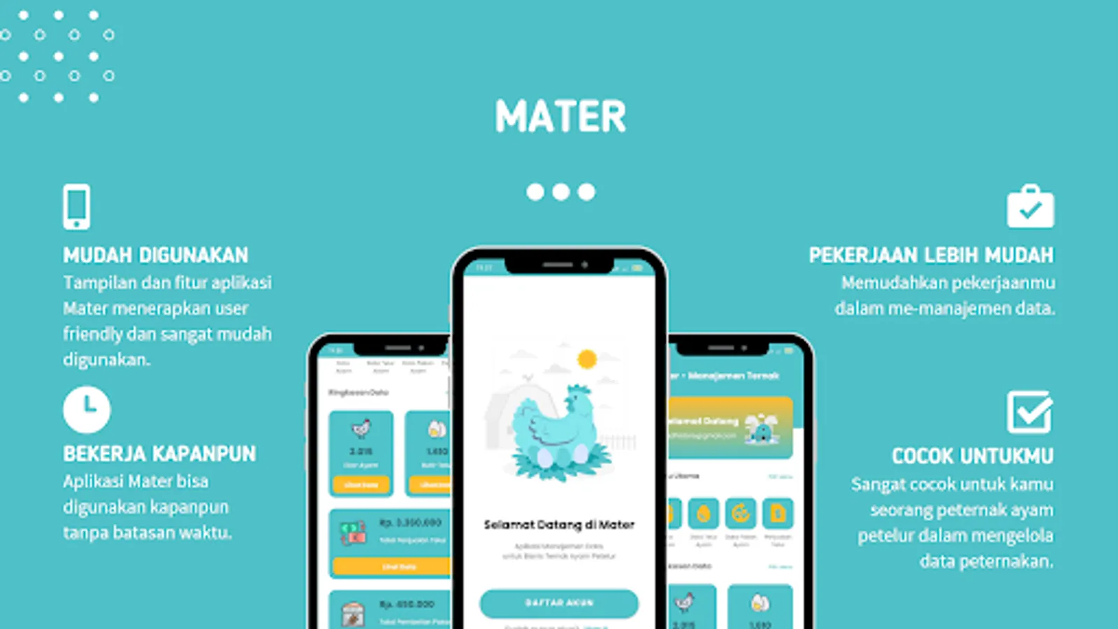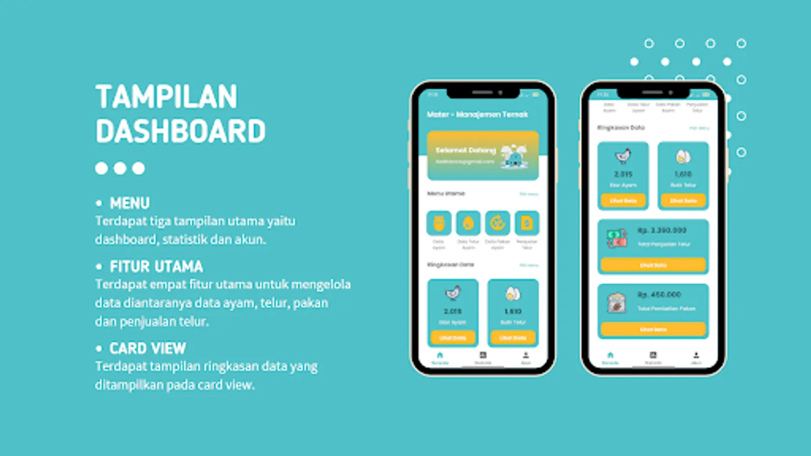 With the help of this application, farmers can increase productivity, optimize income, and better manage their laying hen business.
