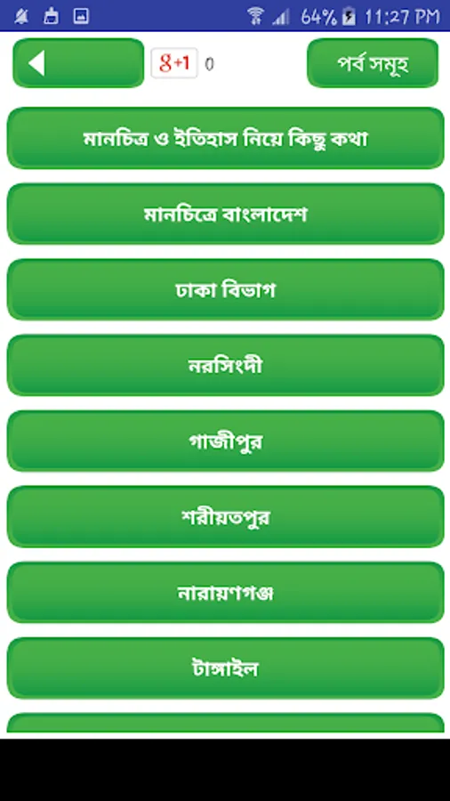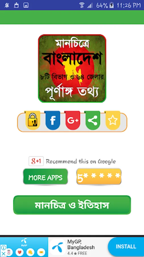 বাংলাদেশের ৬৪ জেলার ইতিহাস একটি শিক্ষা মূলক ও ইতিহাস ভিত্তিক অ্যাপ এবং কি নিজের বুদ্ধিমত্তা বিকাশের জন্য সাধারন জ্ঞান বাংলাদেশ ও সাধারন জ্ঞান বাংলাদেশ ও আন্তর্জাতিক বিষয়াবলী এর মতো একটি শিক্ষণীয় একটি সুন্দর অ্যাপ।