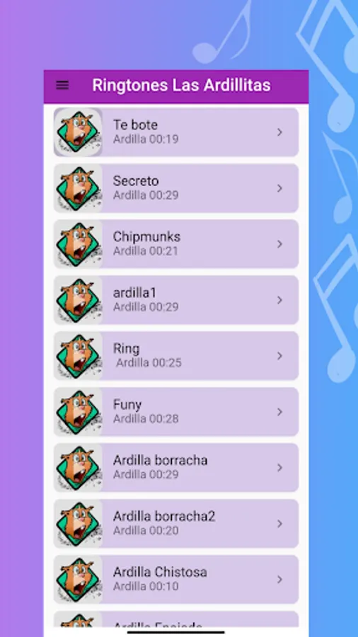 Enjoy the great variety of themes of the most famous entertainment squirrels of the best time and current fashion to remember beautiful melodies interpreted by the squirrels, character and funny movie movies the squirrels the best entertainment app of effects of sounds of the squirrel drunk, angry, funny, poet, bata bata, mambo, slowly, my people, limbo, without pajamas as a ringtone for your cell phone, includes outstanding sounds of the squirrels to set as a ringtone, notification tone, tone alarm, SMS tone.