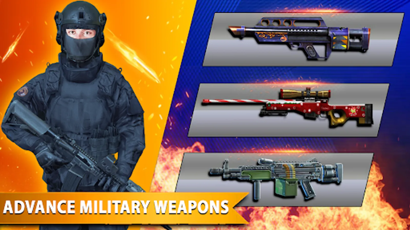 Complete Gun Strike Commando Mission of FPS Shooting Game with the best sniping gun in your FPS Mobile games. Play non-stop Commando Action Game in Modern War Combat Shooting with Auto shoot Guns and sniper in Sniper Shooting FPS Games.