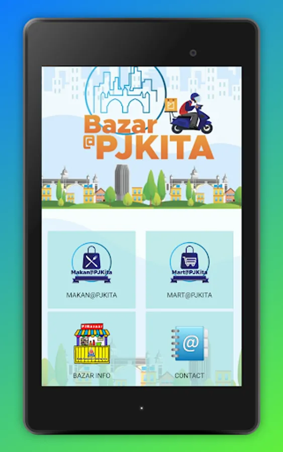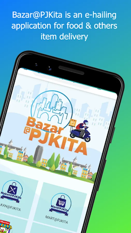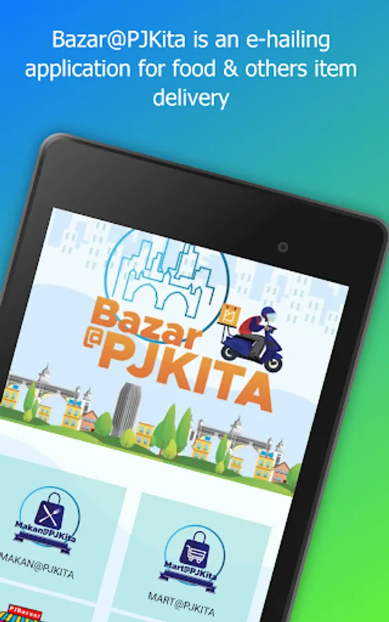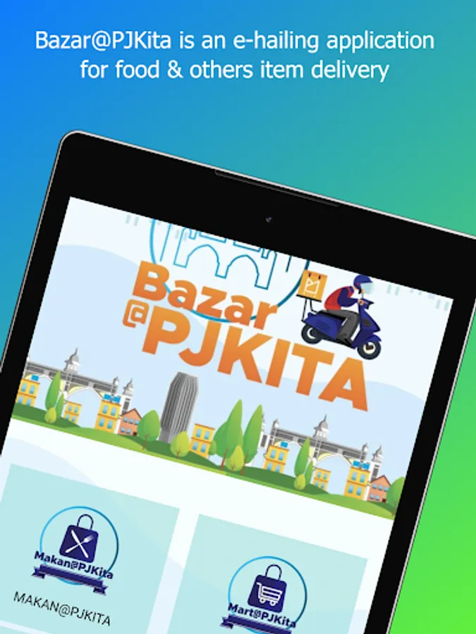 Bazar@PJKita is an e-hailing application for food delivery (Makan@PJKita) and goods, groceries, documents or other items delivery (Mart@PJKita).