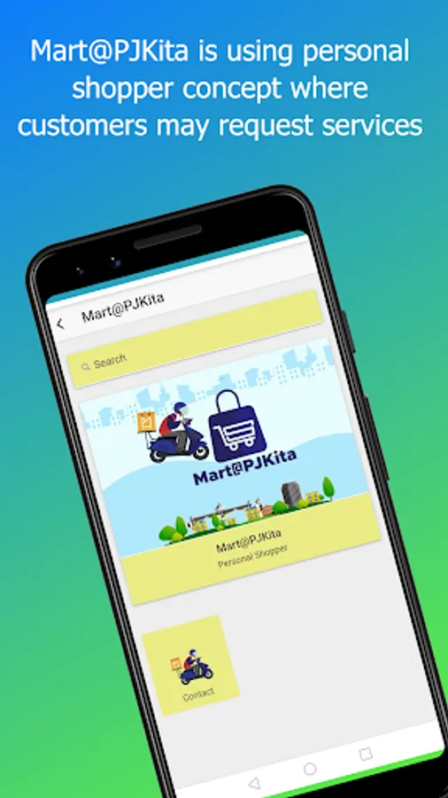 Mart@PJKita is using personal shopper concept where customers may request services such as document deliveries and pick-ups or groceries purchases. Customers order from businesses that use platforms such as Whatsapp, Telegram, Facebook or other social media to promote their services. Payment is through online transfer or cash on delivery.