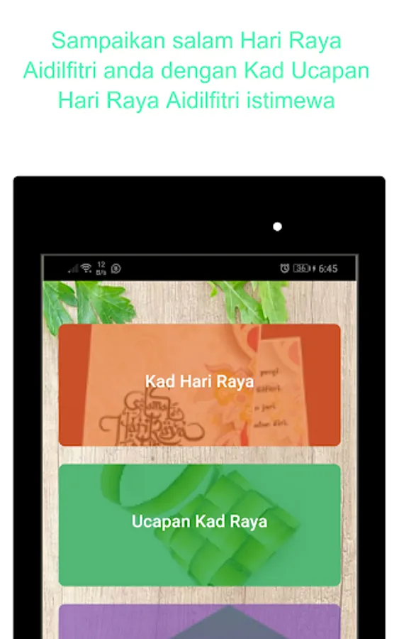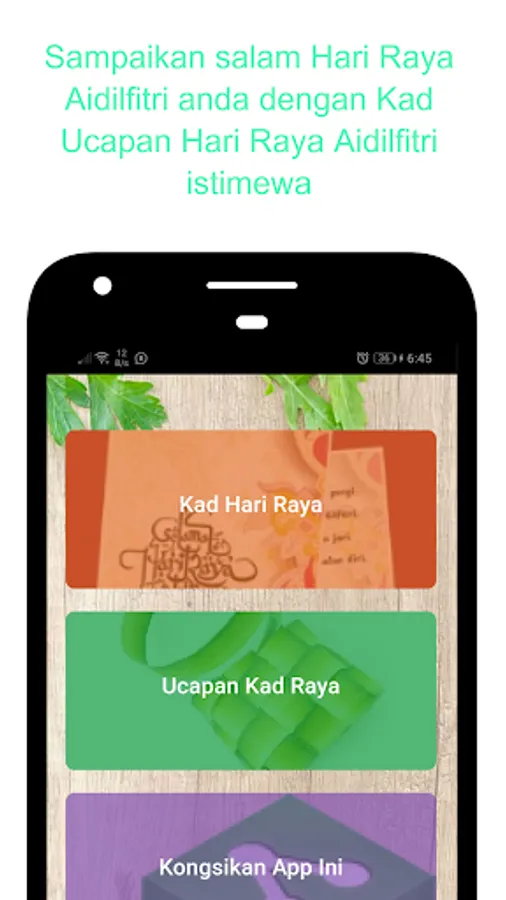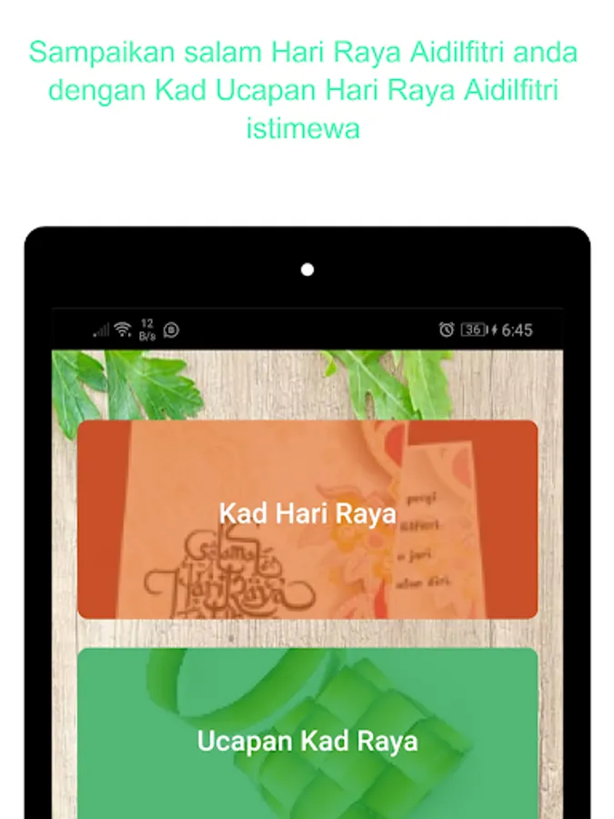 Aplikasi Kad Ucapan Hari Raya Aidilfitri amat mudah dan muat turun percuma. Dengan aplikasi yang mesra pengguna ini, anda boleh memilih berbagai Kad Ucapan Hari Raya Aidilfitri yang cantik menawan.
