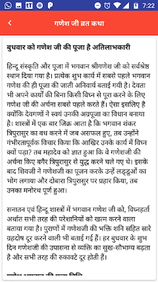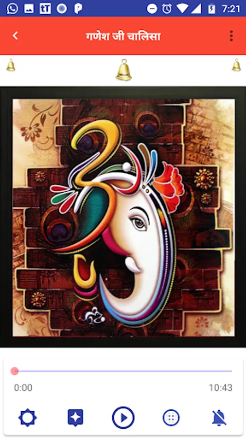 Ganesh Ji Aarti contains both Aarti lyrics and mp3(Audio) so you can listen as well as read or sing Aarti. You can also enjoy realtime animation(Bell move, Flower Animation and other).