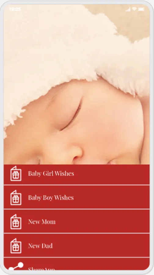 Newborn baby wishes and baby congratulations cards is a very easy application which contains a lot of Newborn baby wishes and baby congratulations cards and messages to send to your friends, family members, loved one, special friend, workmate, best friend, soulmate and share on your social media the Newborn baby wishes and baby congratulations cards and messages to be always the one who first to remember and to send the Newborn baby wishes and baby congratulations cards.