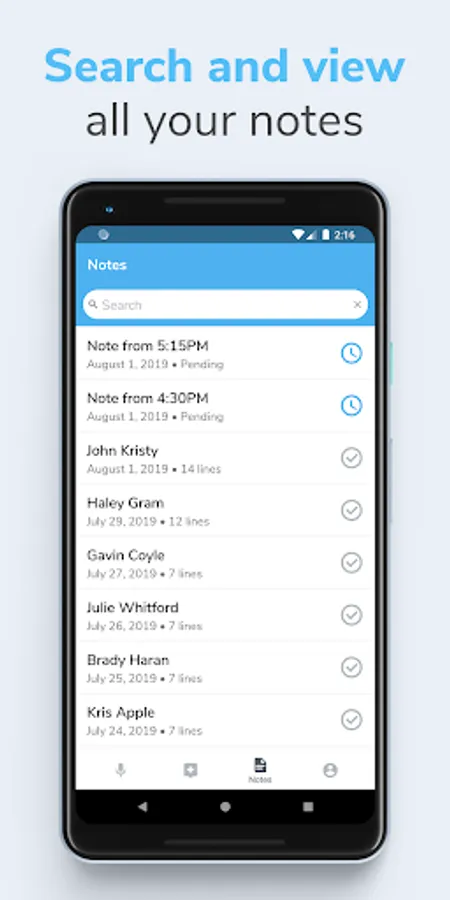 - Search & view past notes