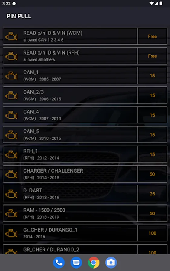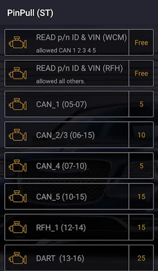 It is a token based app!!! Buy tokens through an app purchase which get stored in your account, then spend them on different app functions which are priced differently. This prices of the app functions may vary from time to time. The PIN PULL comes free to download with small amount of tokens just enough to test it once it's real work on vehicle. Then buy it if you like it for the budget you willing to spend at the moment...