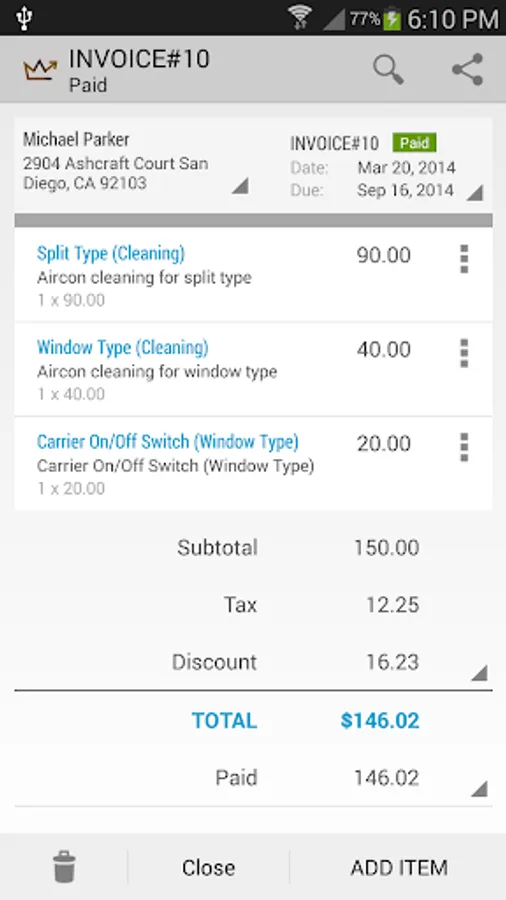 • Track invoices and customer payments. Know when a payment is due, accept invoice payments, and see the customer’s total balance. See how much you earned over time. See who owes you and by how much. This way you’re always on top of things.