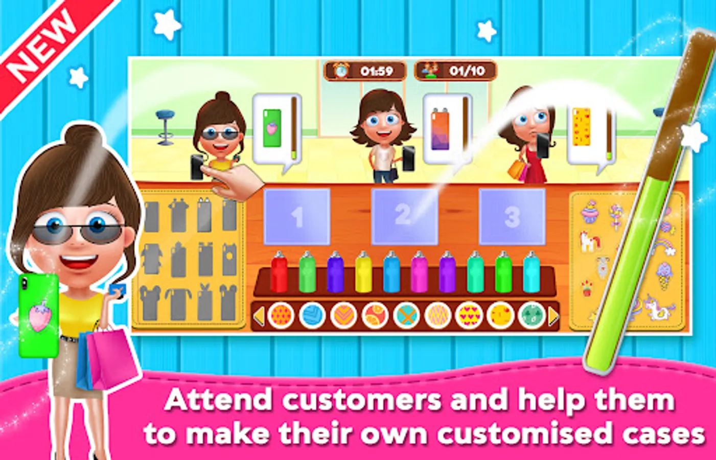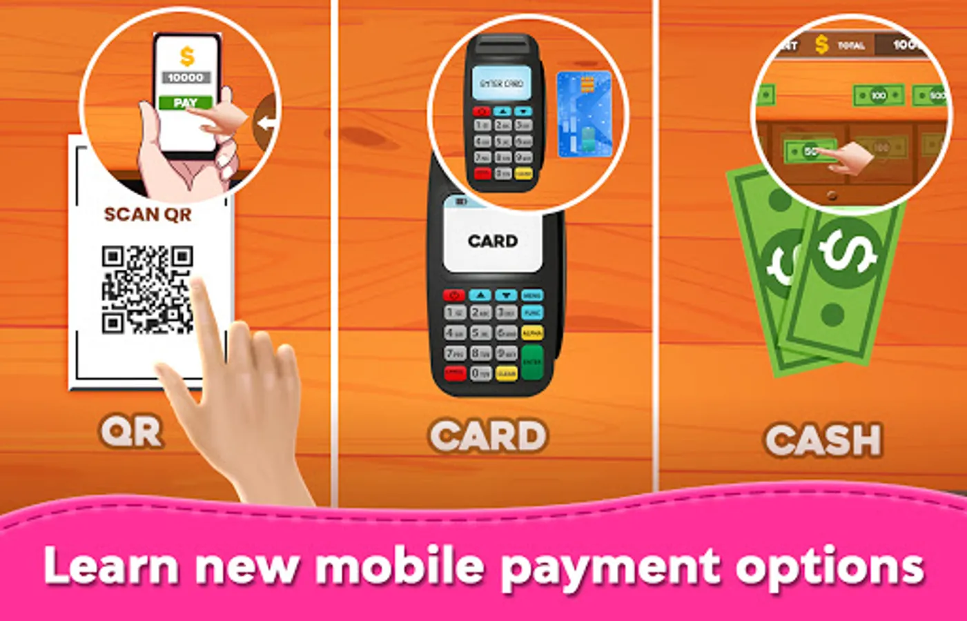 Go Shopping! Be a Mobile Shop Cashier! Mobile Case Shopping Mall with lots of Mobile cases, Chargers, power banks, headphone to buy from. Learn different types of payment methods in the Cash Register Game.