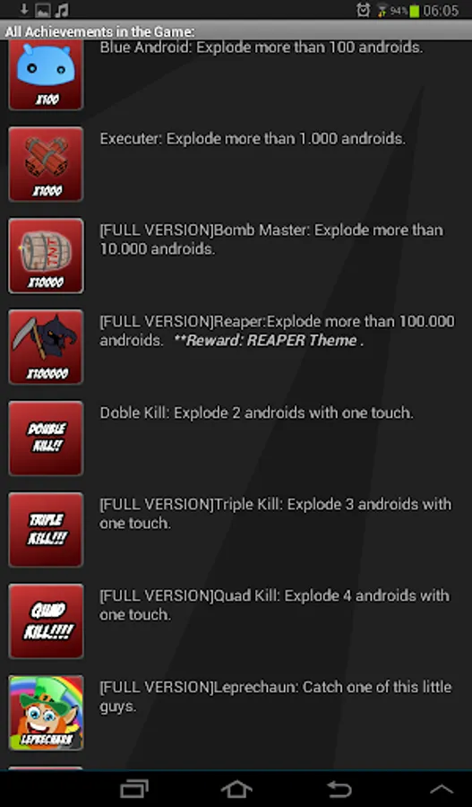 * Reaper - Explode more than 100.000 androids REWARD: REAPER THEME!!