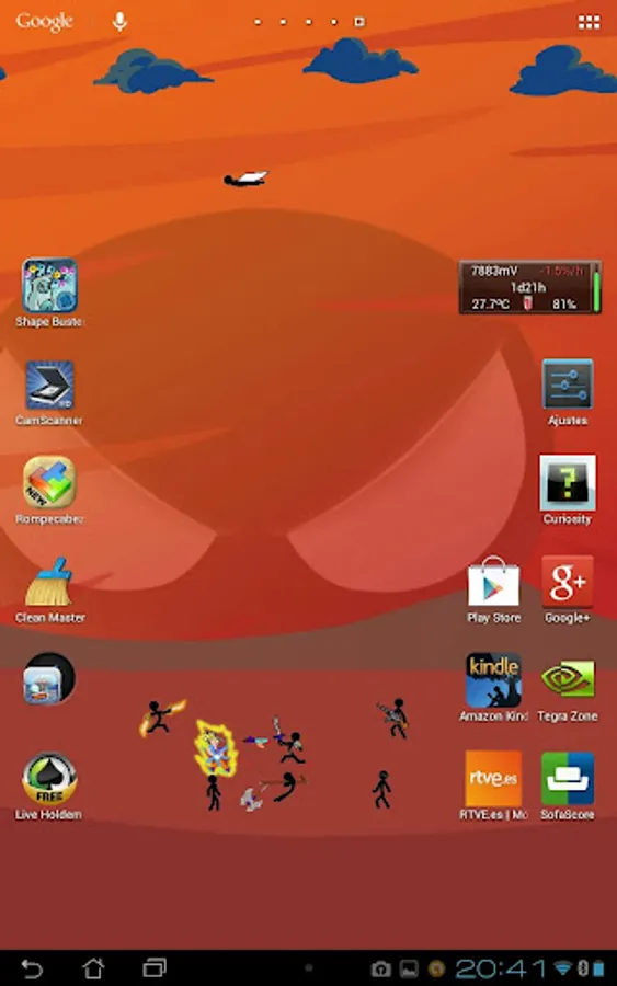 Have a real stick man wallpaper as your home screen, having the possibility to choose from different backgrounds, themes, flying objects and more!