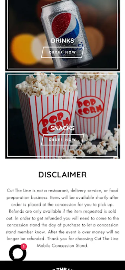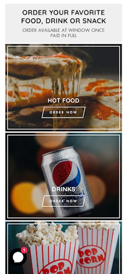 Allows customers to order concession food from their seats. You can order your favorite food, drink or snack.