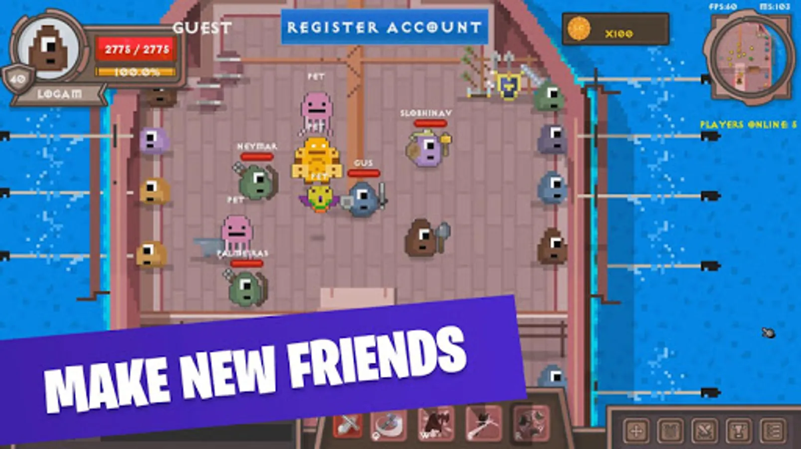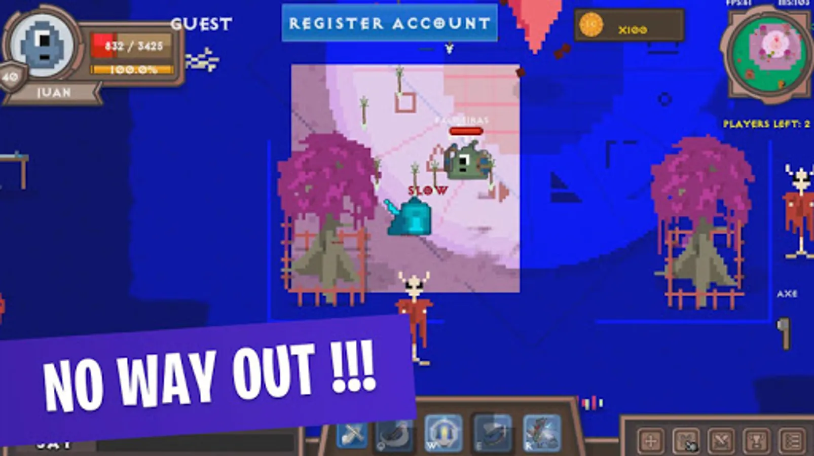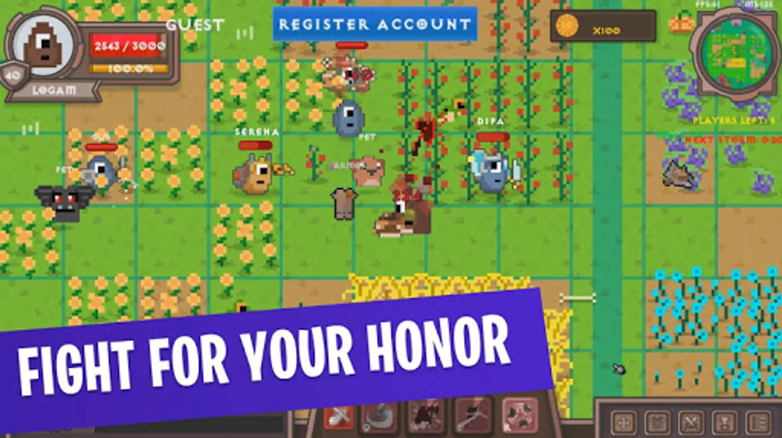 Immerse yourself into an open 2D Battle Royale Pixel Art World!