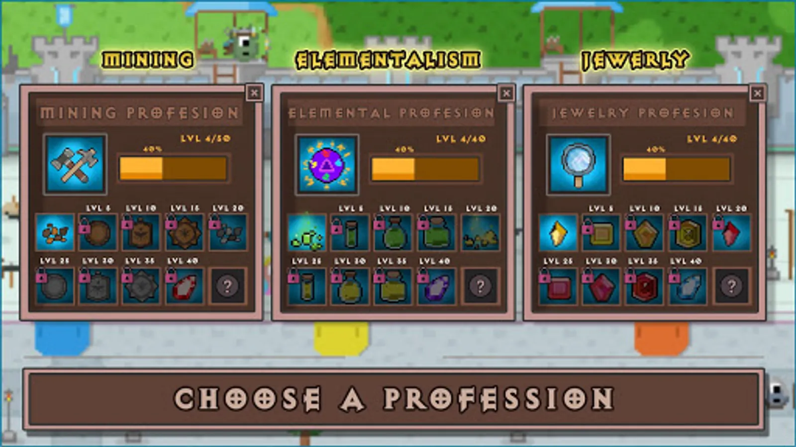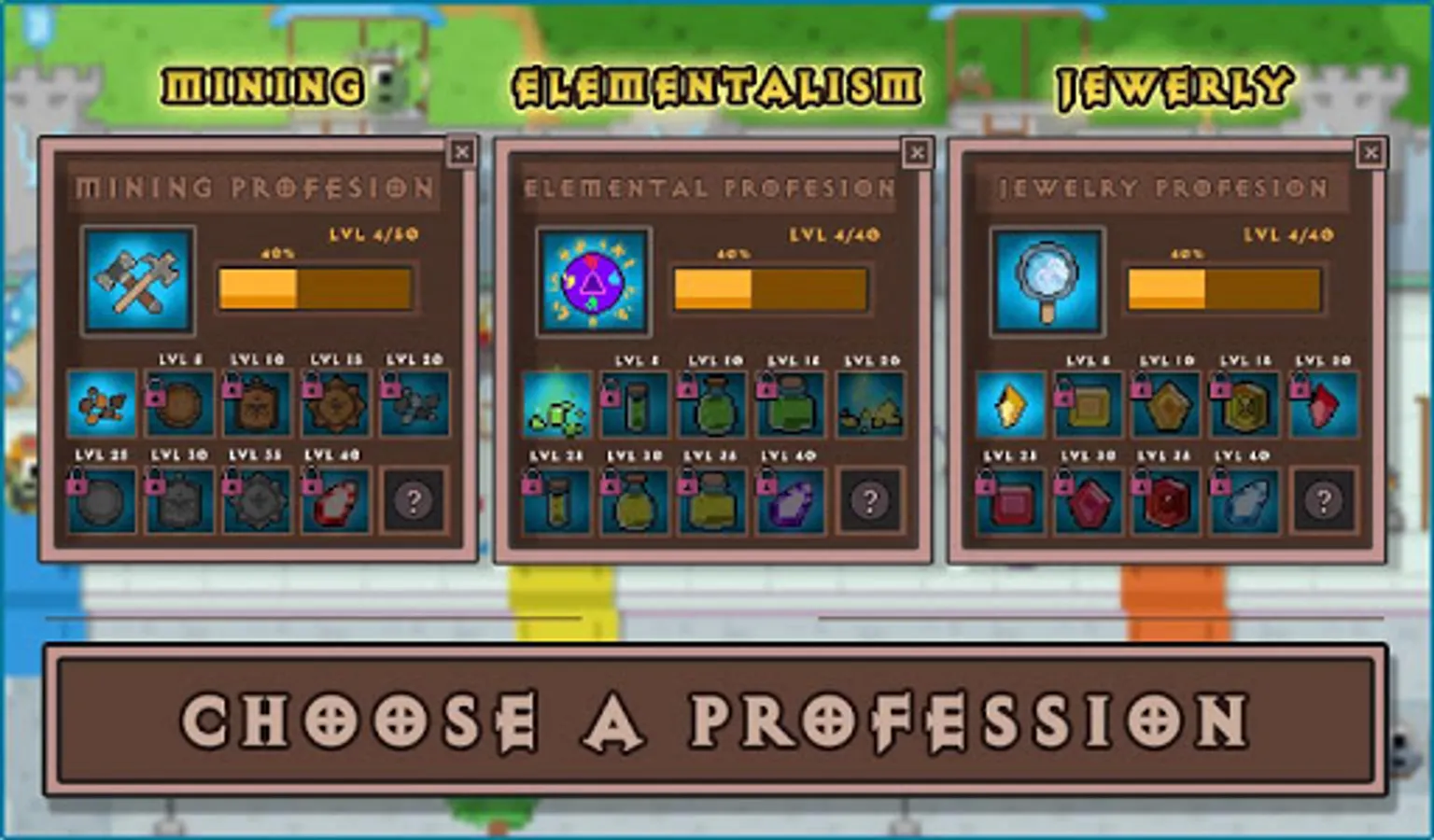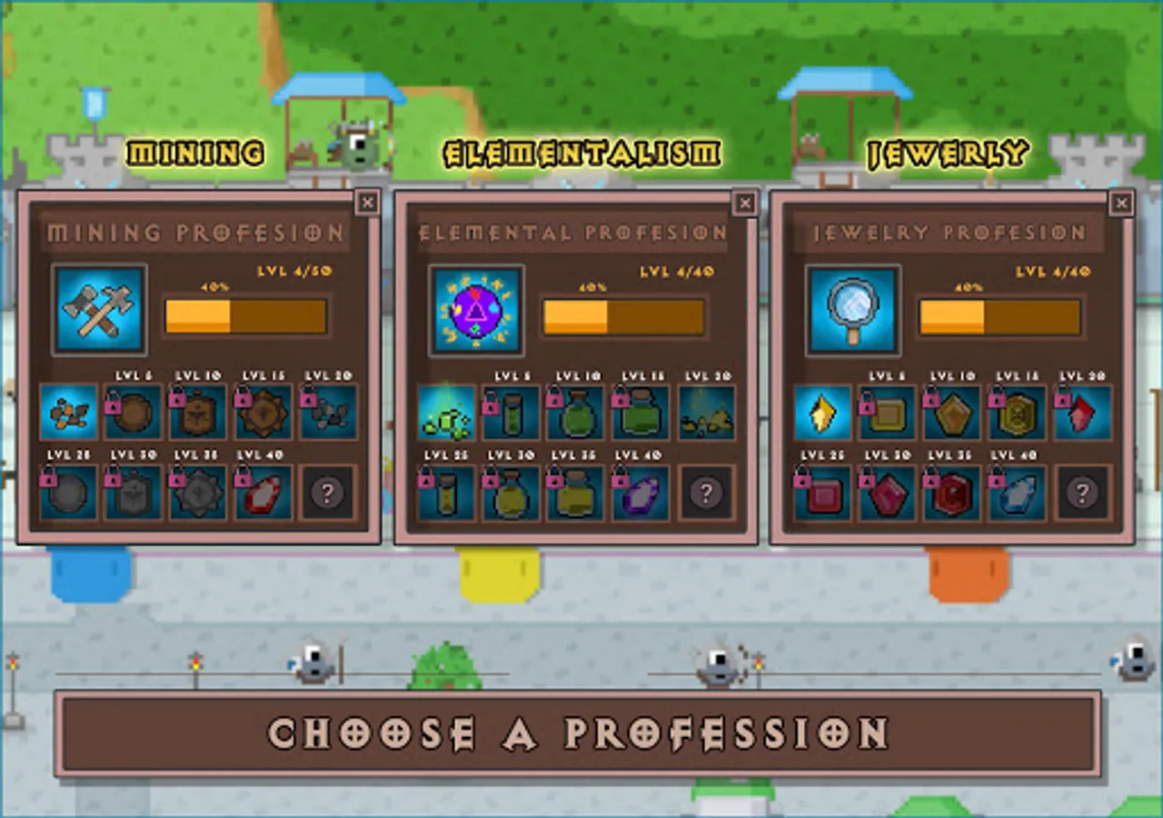Choose between the 3 professions: mining, elementalist and jewelry.