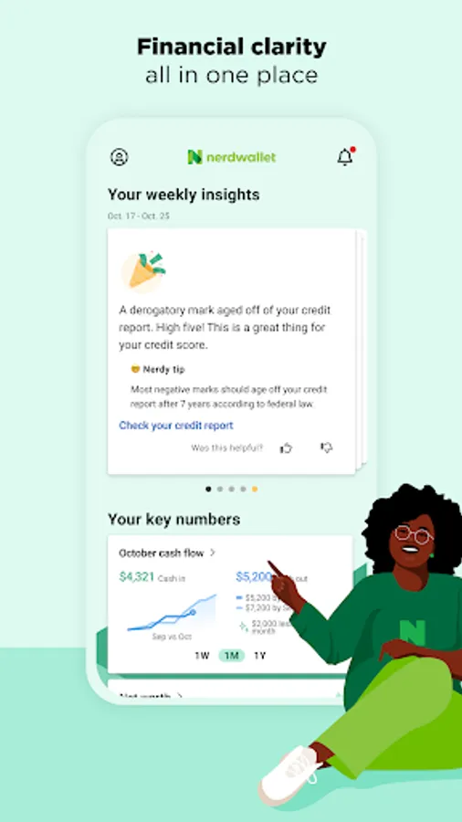 Discover the insights you need to make the most of your money. Start with the big picture and see all your financial accounts on one screen. Or zoom in on the details of your cash flow, expenses, credit score and net worth. Plus, get Nerd-approved tips to build it all.