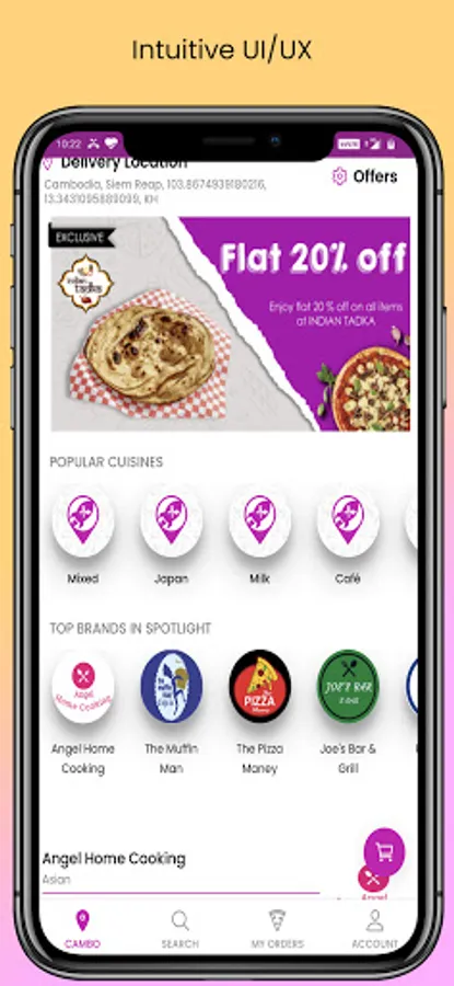 Using CamboFood Mobile App, you can now order food & beverages online from restaurants near & around you. We deliver food from your nearest restaurants, highly rated restaurants, famous cafes & favorite restaurants in your area.