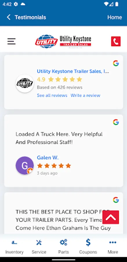 Utility Keystone Trailer Sales loyalty app provides customers with an enhanced user experience, including personalized coupons, specials and easy service scheduling.
