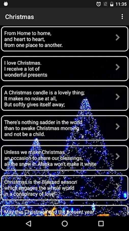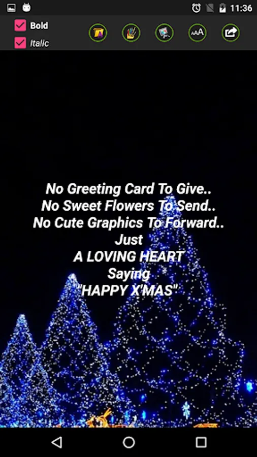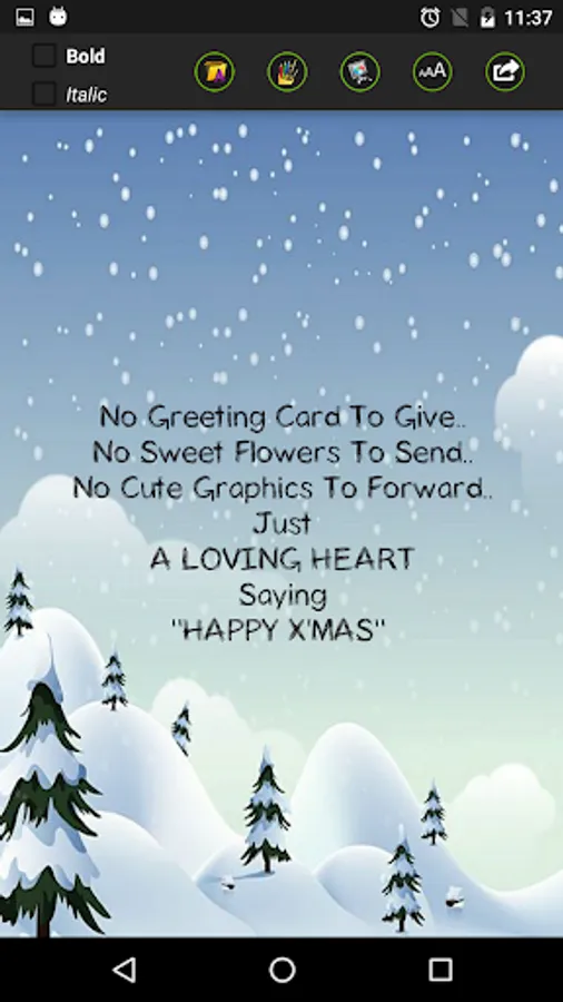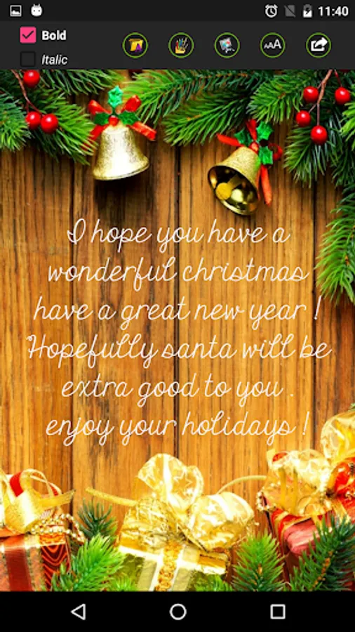 The app is designed to create and send a customized Christmas greeting message to your relatives, friends, family members.