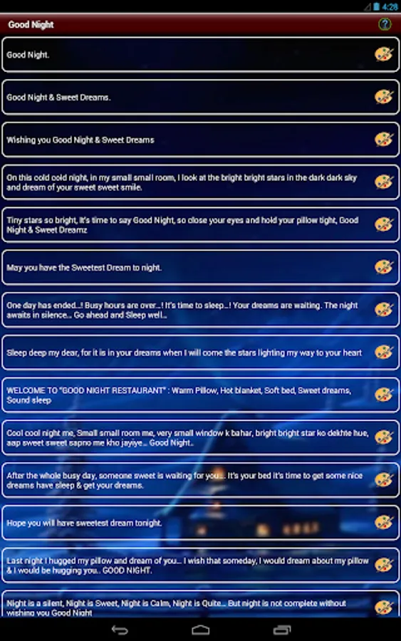 ★ In this app, we have given you pre-listing of hundreds of wishing quotes at the sleeping time.