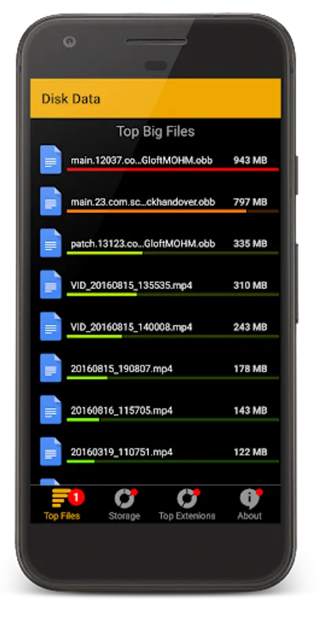 Using our simple Storage Space manager - Big Files Finder App you can easily scan and find the biggest files on your device storage fast and clean them easily, by analyse and finding big files even if it's hidden.